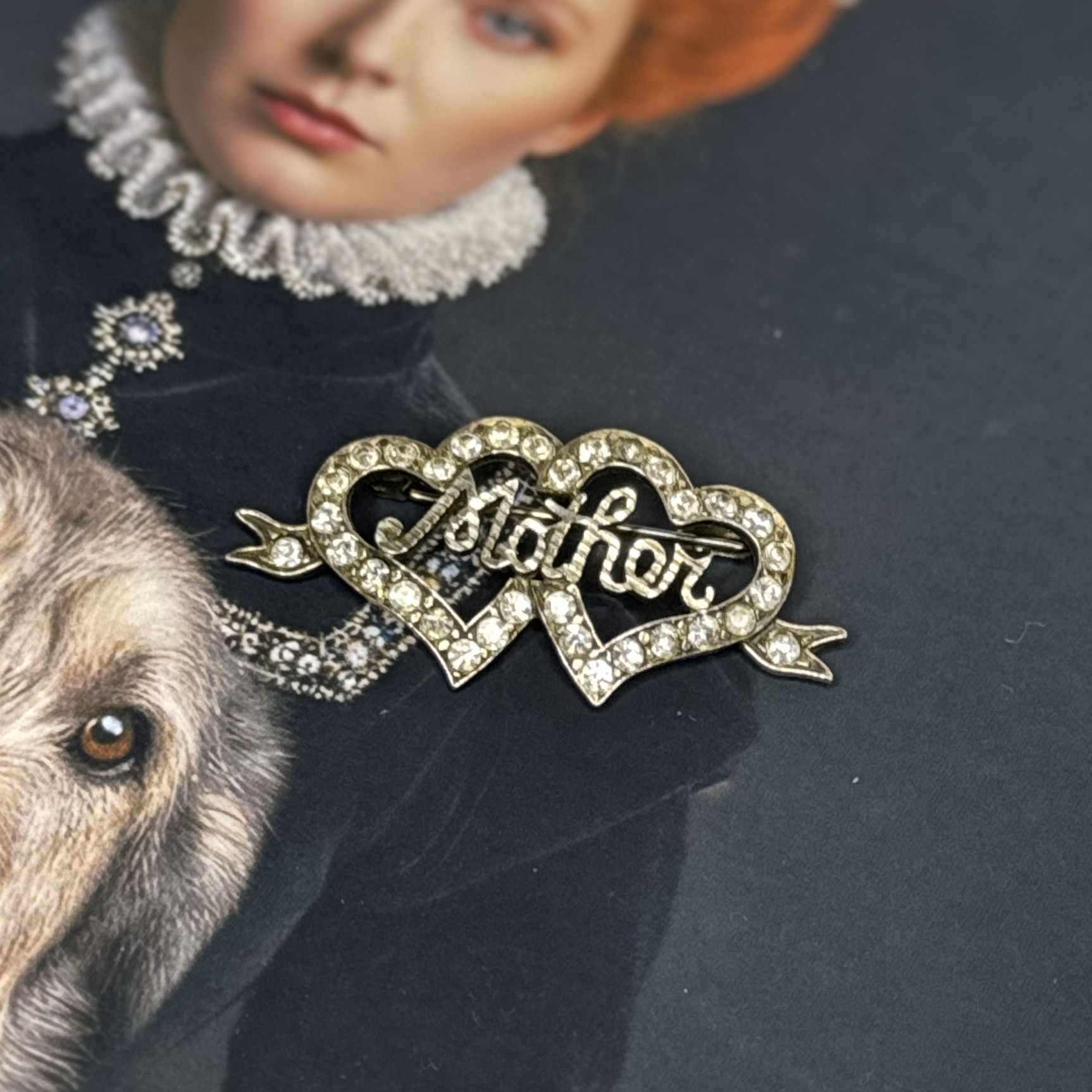 Antique sterling silver Mother Heart Brooch