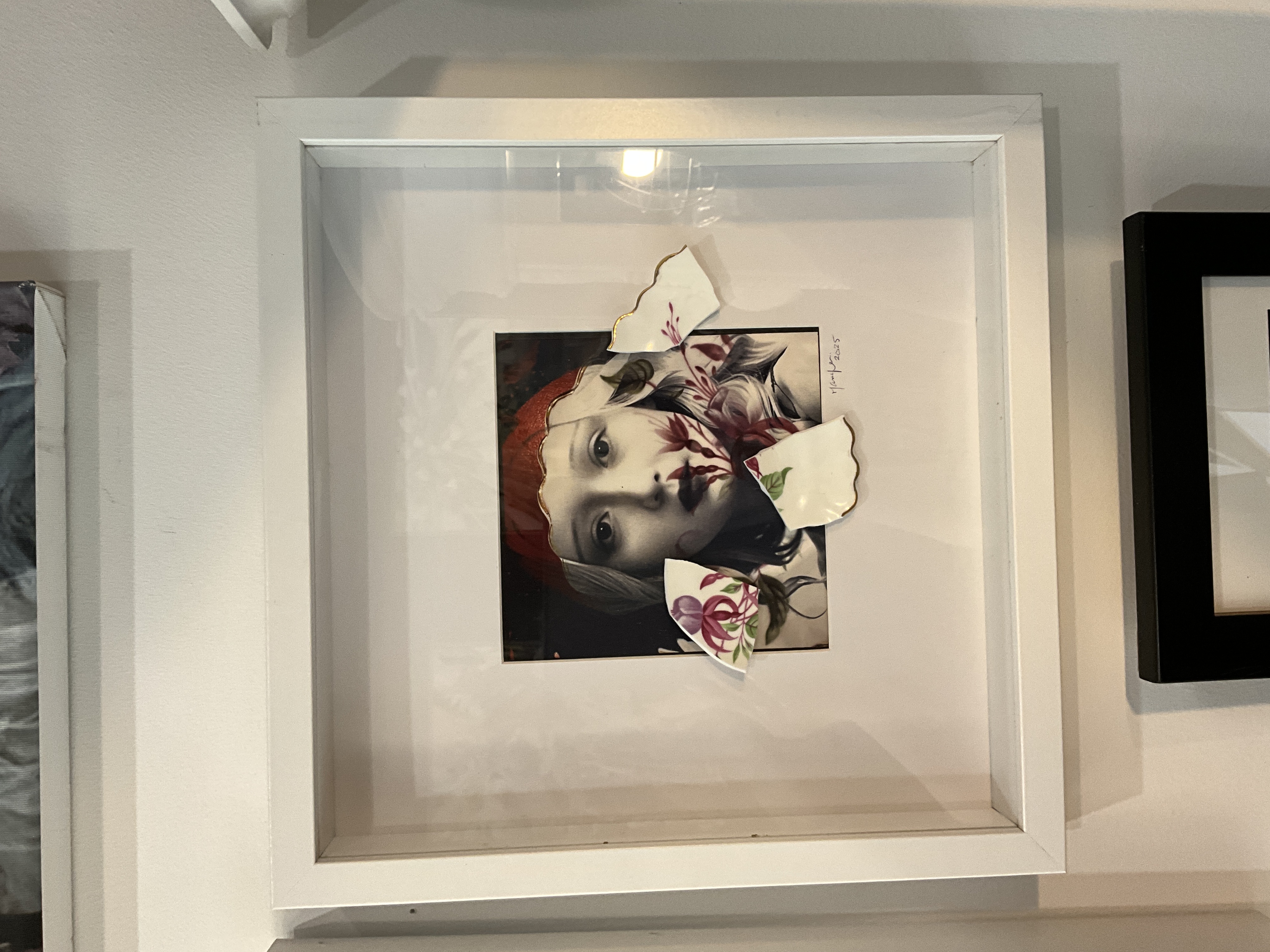 Modern mixed-media collages often merge traditional and digital elements. Think acrylic paint intertwined with digital cutouts, photographic overlays fused with porcelain fragments, or layered textures merging into glowing, surreal dreamscapes.