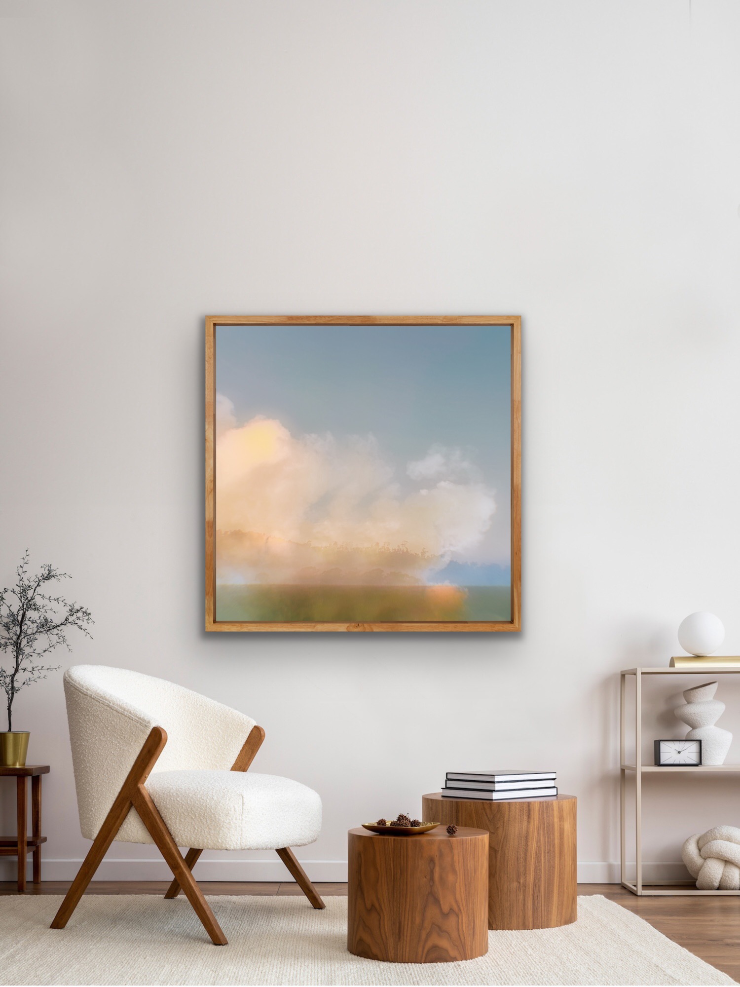 This work is stretched, framed in raw recycled oak, an original work it comes signed and with a certificate of authenticity and measures 87x87x4cm.