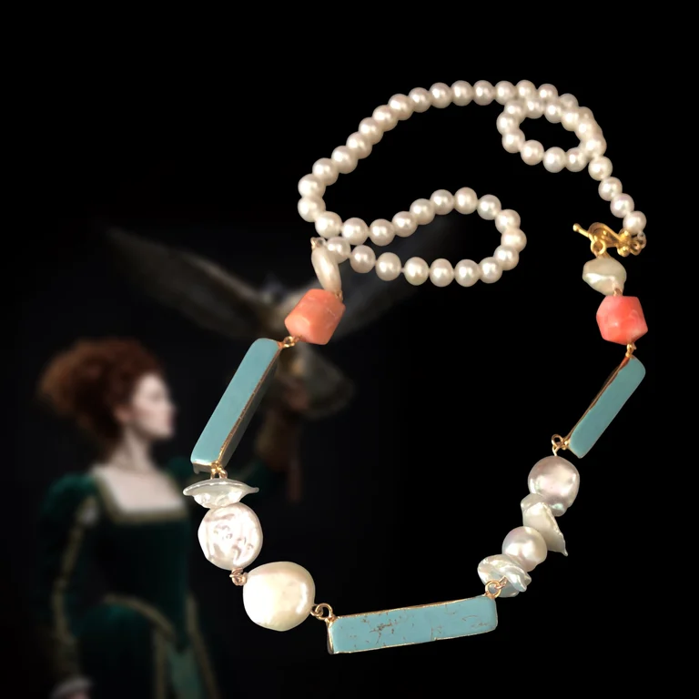 Captured Memories Vintage porcelain, freshwater pearl assymetrical earrings