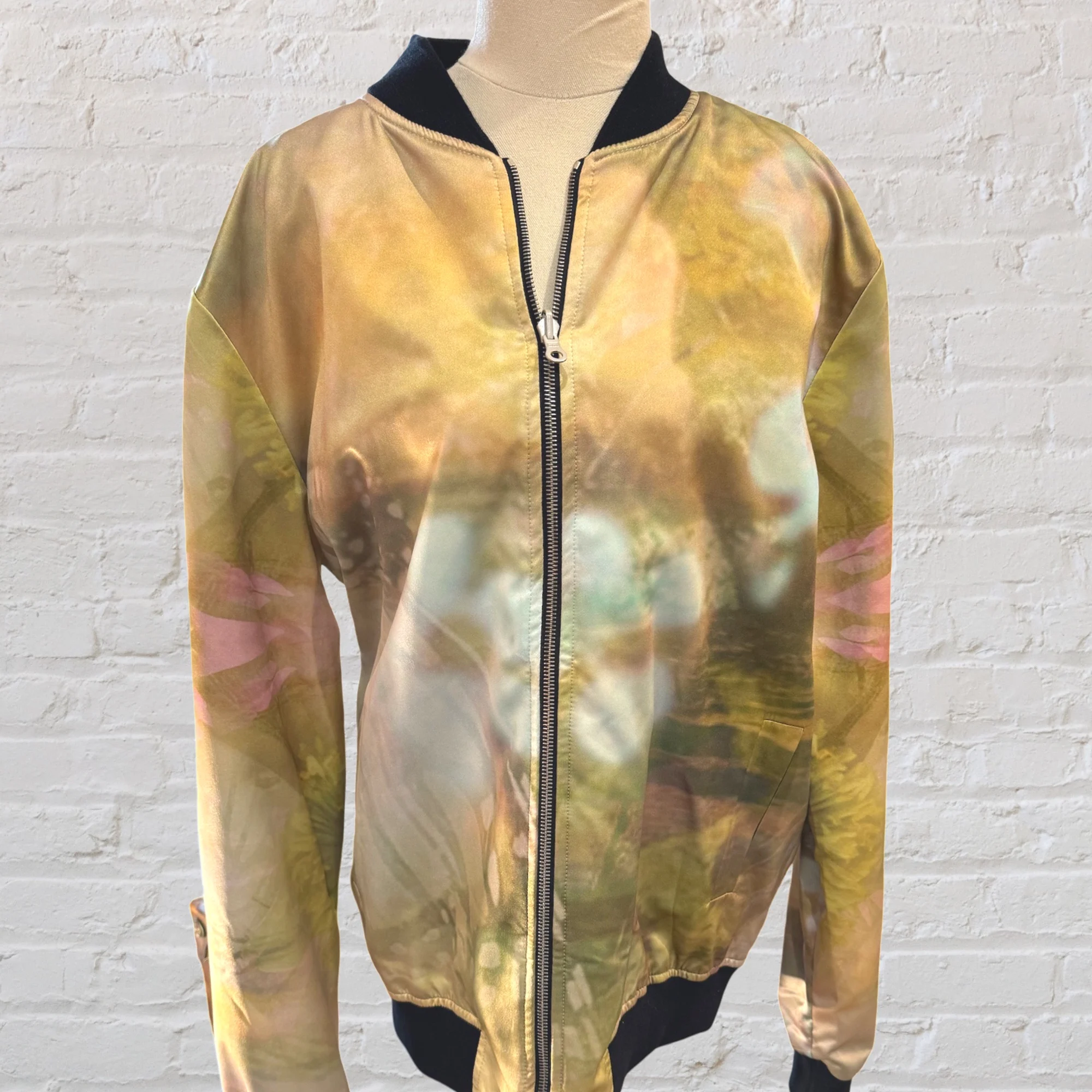 This limited edition jacket is fully reversible and is 100% silk and cotton. It is an original artwork printed on fabric for me in England UK. This jacket has been created for an oversize style.