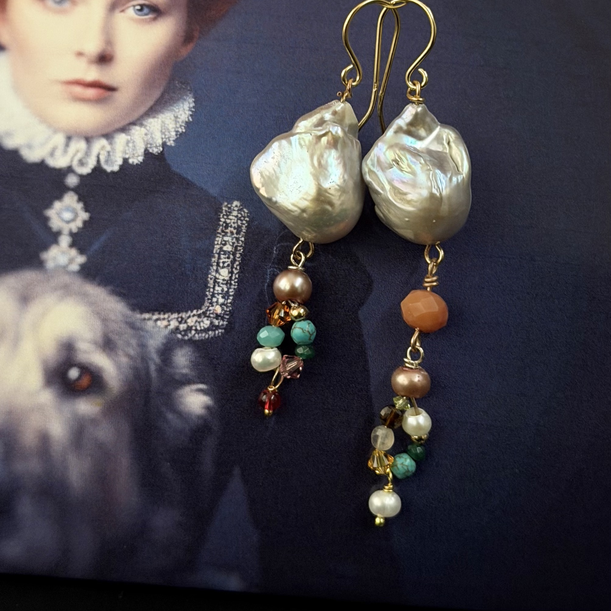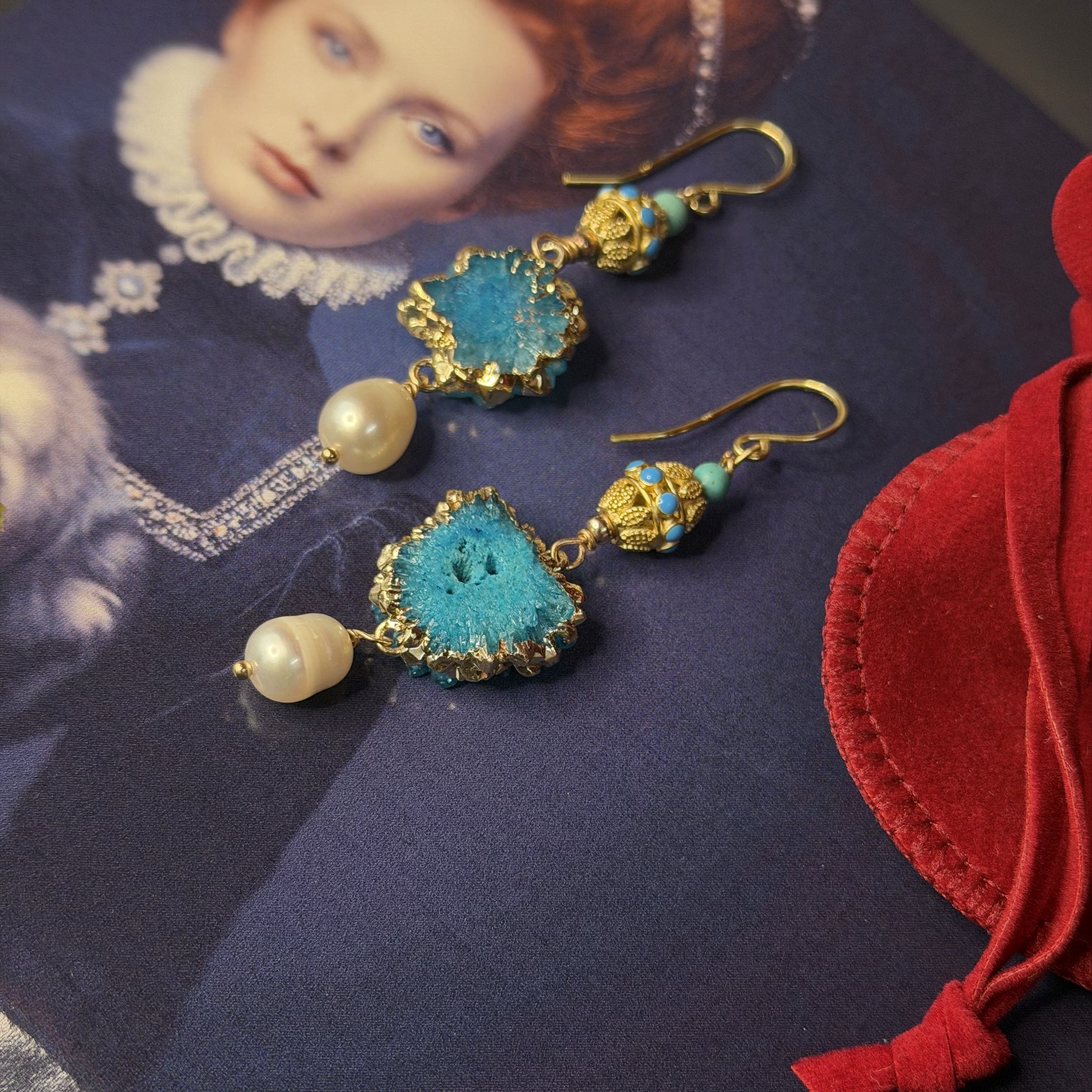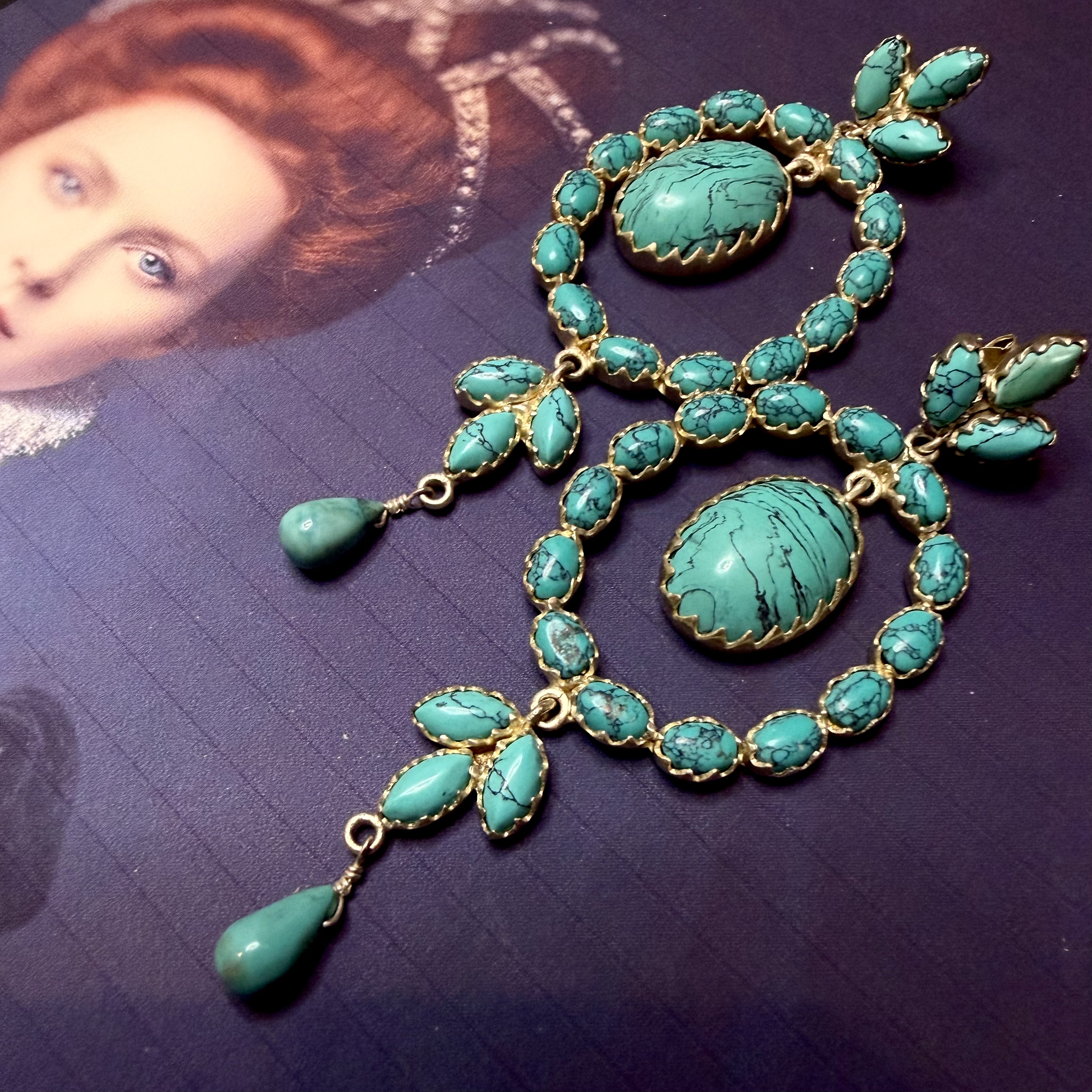 Turquoise vintage sterling silver, gold plate drop statement earrings